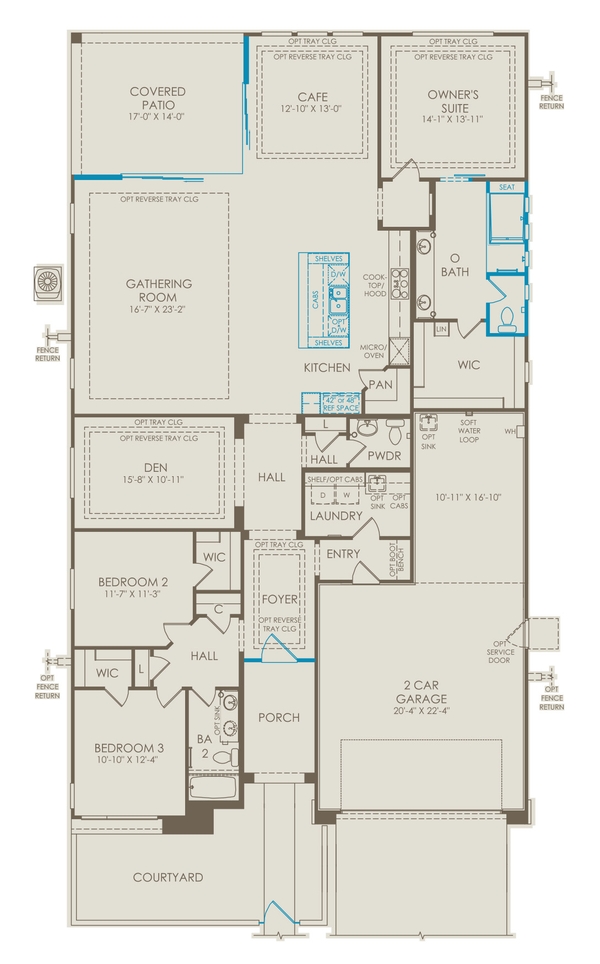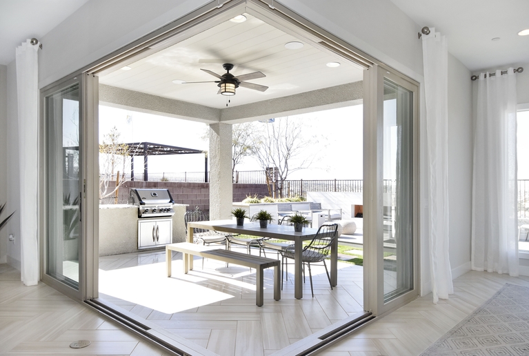 - Connects to the outdoors throughout the home with sliding glass doors, plentiful glazing, and covered outdoor rooms.