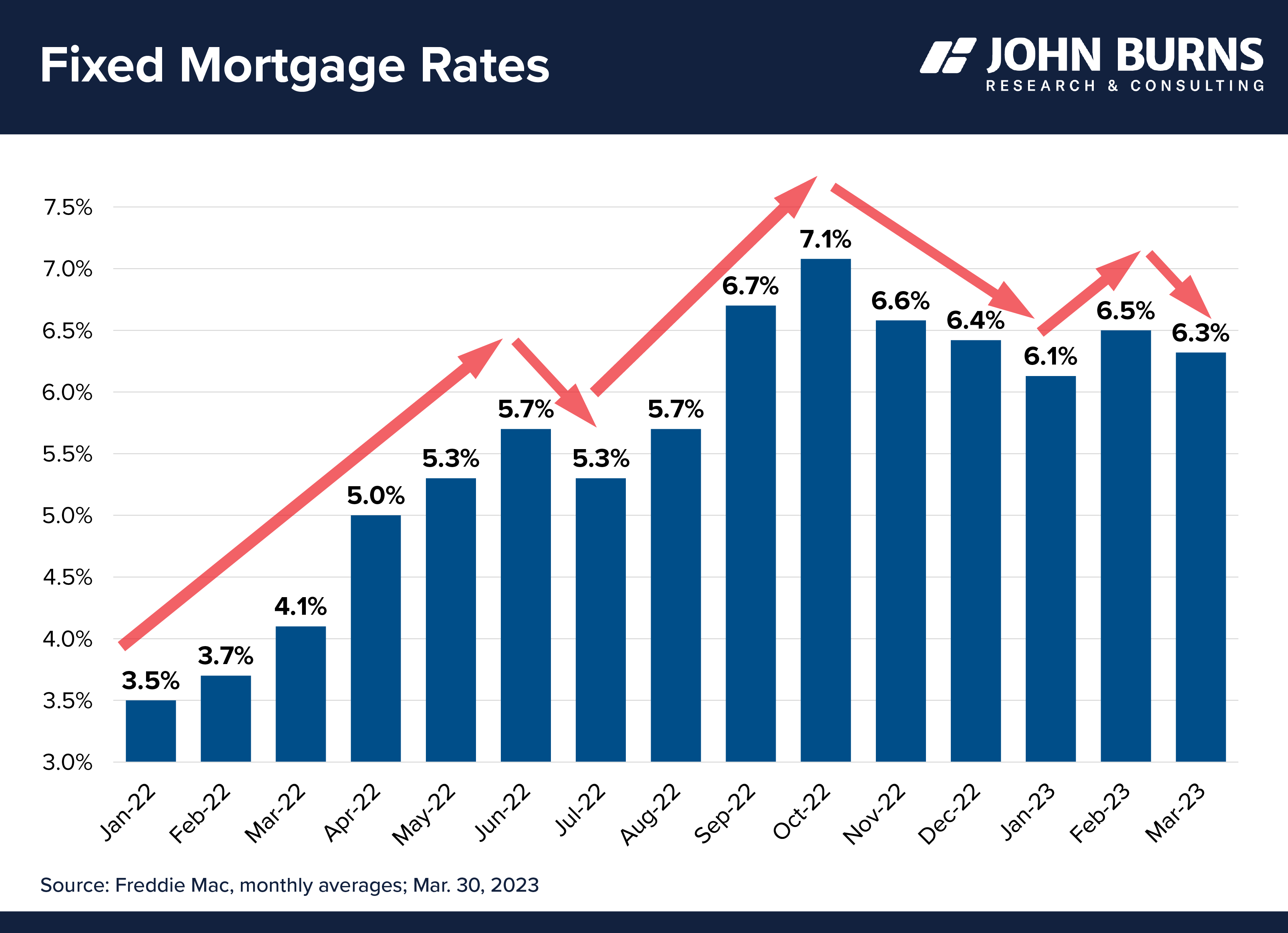 - Rates then trended down through January, boosting sales early this year, rose in February, slowing sales, and then reversed course again in March, helping sales.