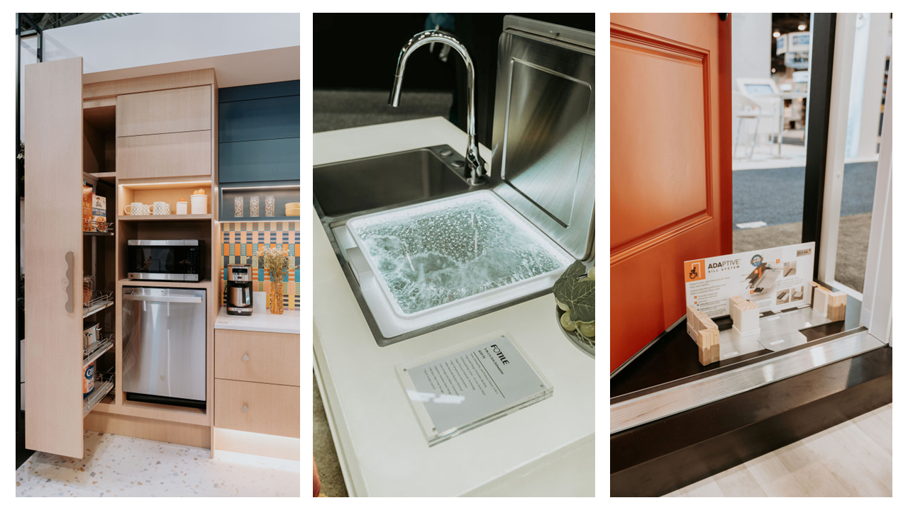 Suppliers placed greater emphasis on accessible and universal design principles this year. With a colorful accessory dwelling unit (ADU) popup, GE displayed the joys of comfortably aging in place. The company tailored the ADU for aging adults with features like raised appliances, a shallow sink to prevent hunching over, and wheelchair-accessible space beneath the sink.
