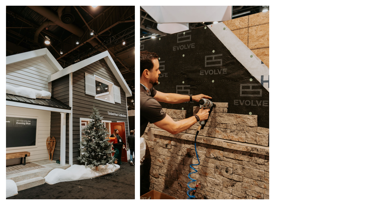 Evolve Stone was another memorable exhibitor. This booth demonstrated its resin composite stone veneer, which looks like real stone and is a breeze to install. Attendees observed several pieces installed with a nail gun in seconds, up to “10 times faster when compared to the competition.”