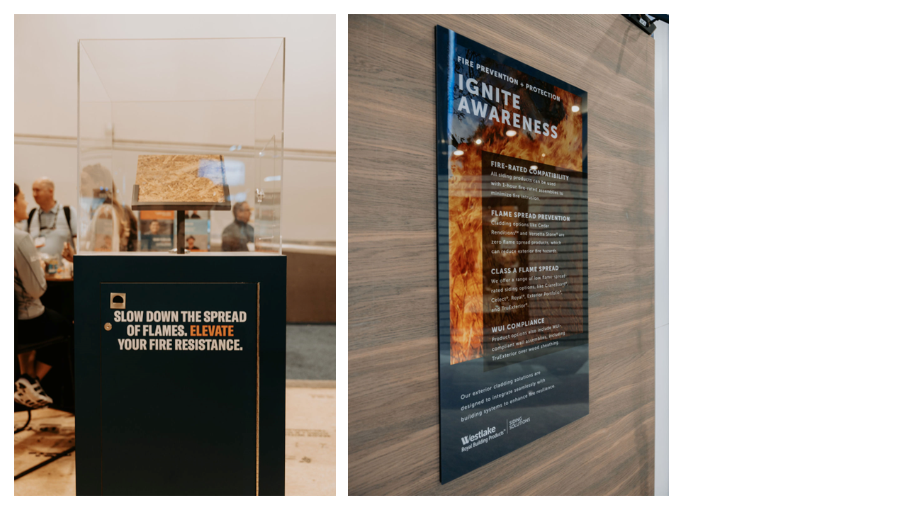 Westlake showcased its Class A Fire-rated, non-combustible stone veneer and roofing, boasting zero flame spread and zero smoke development.
