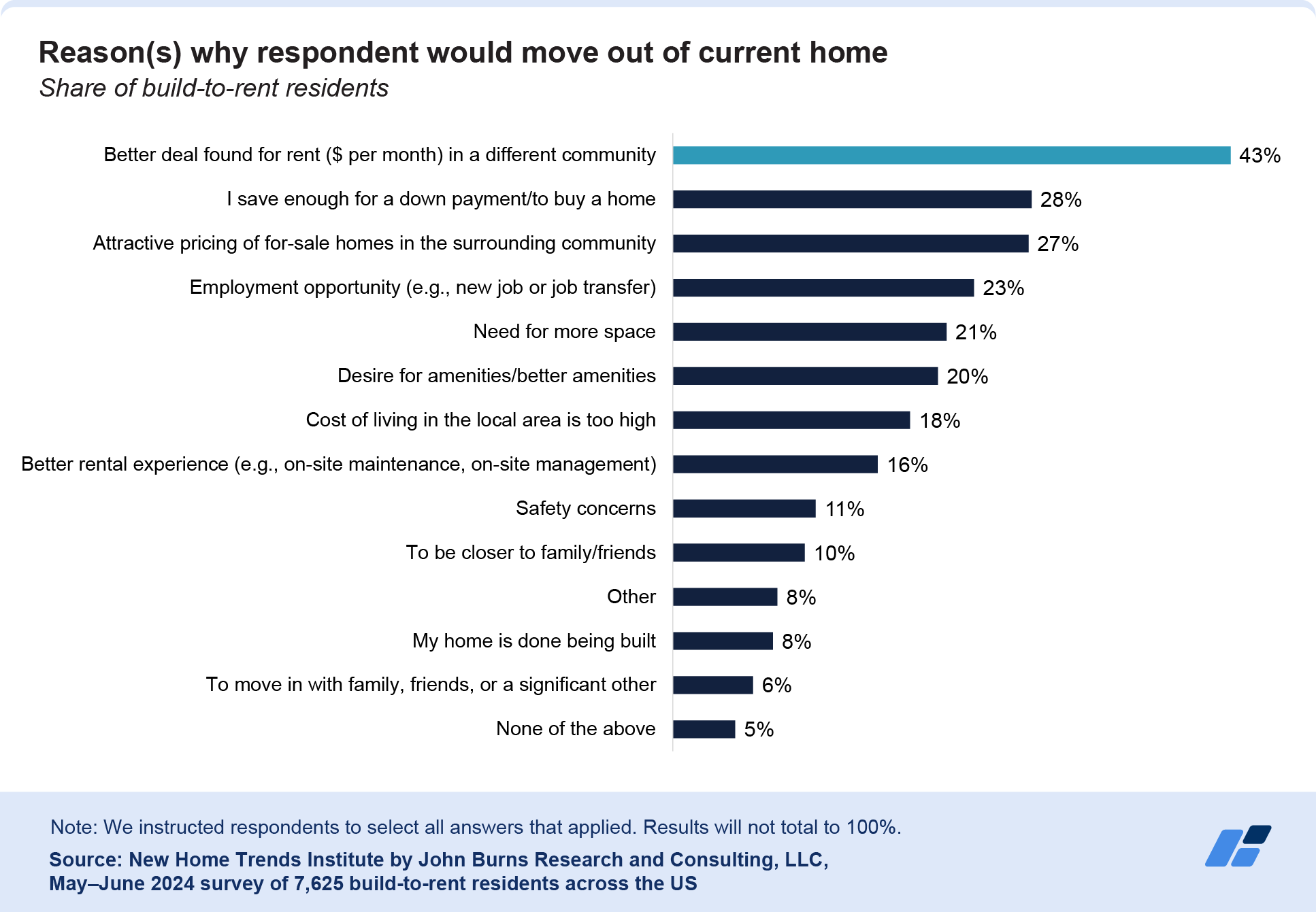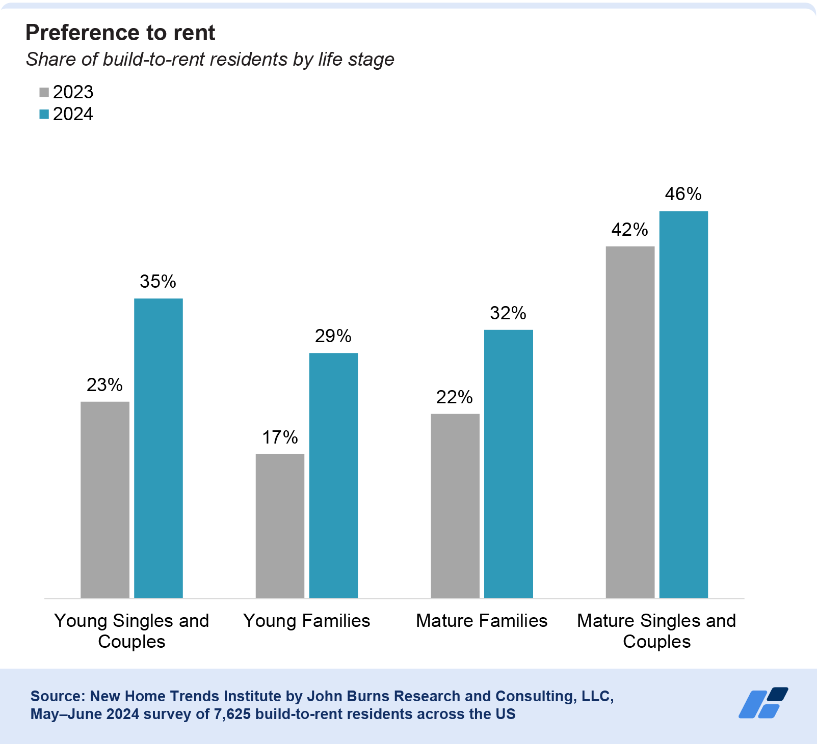 Source: New Home Trends Institute by John Burns Research and Consulting, LLC, May–June 2024 survey of 7,625 build-to-rent residents across the US