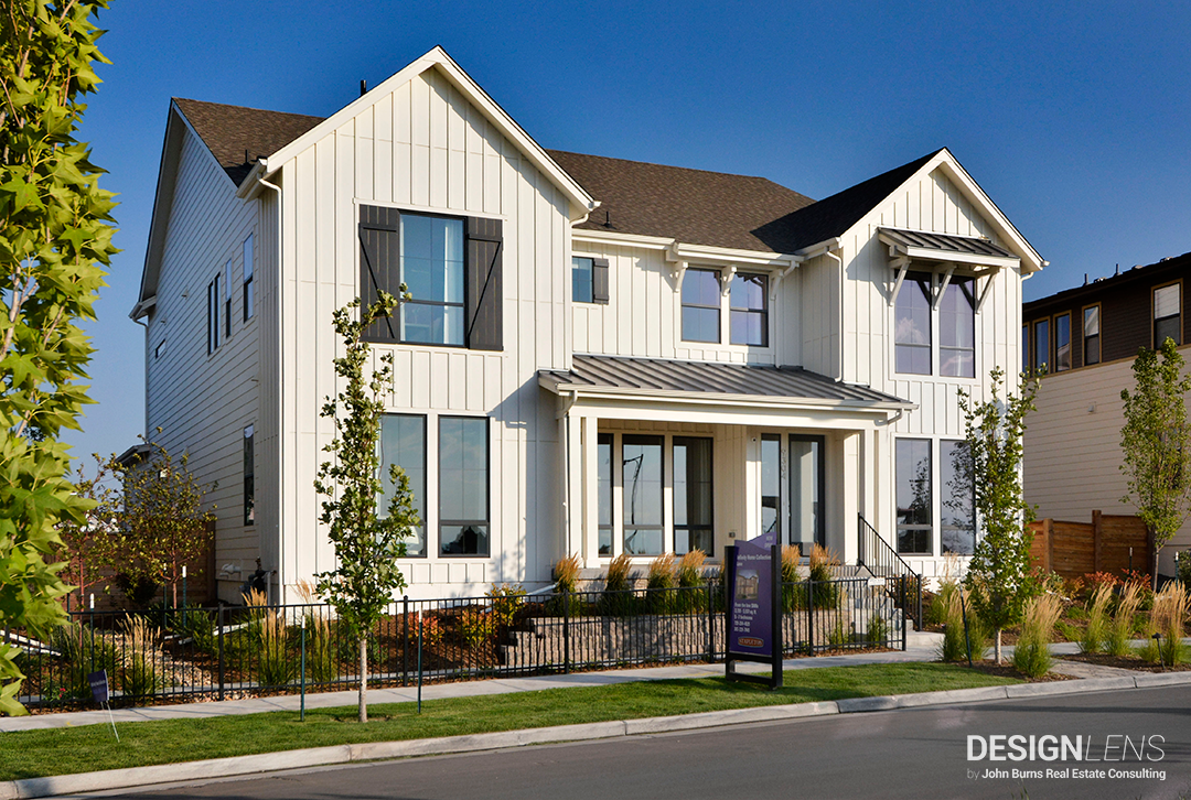 Infinity Home Collection includes a modern take on the farmhouse elevation style at Luxe at Stapleton. As noted below, the farmhouse style is waning, but not in Denver.