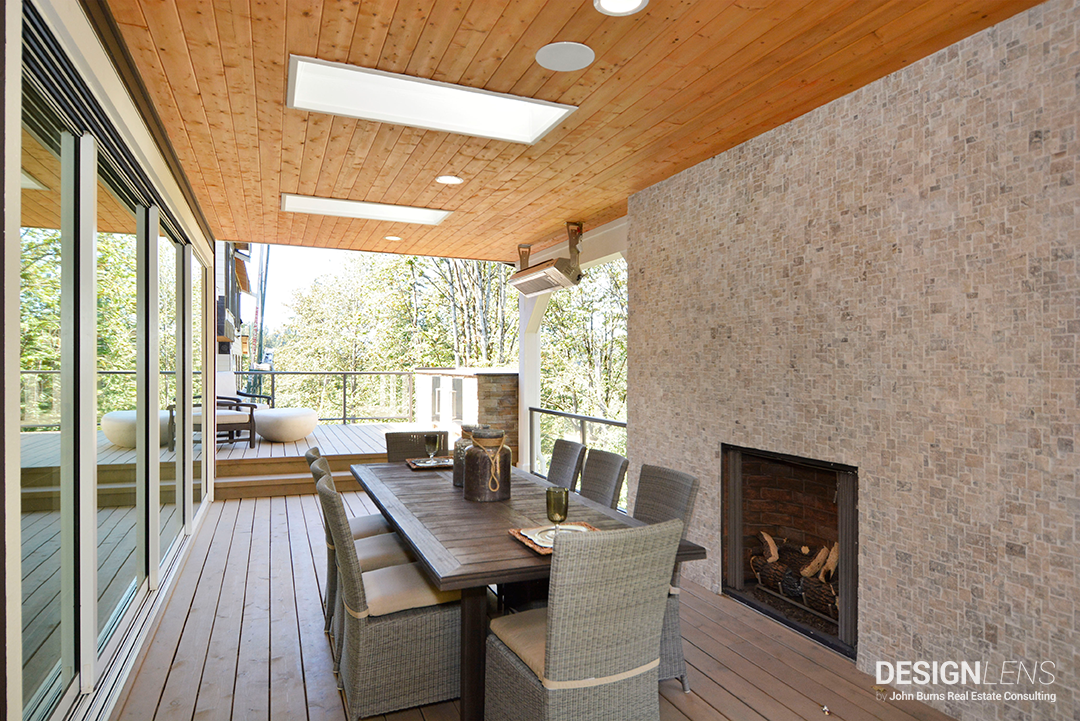 Today’s consumers want their outdoor spaces to have all the comforts of the indoors, including shielding from the elements. Even in the rainy Seattle market, Toll Brothers created a great rear deck with both covered and uncovered portions at Pipers Glen. A fireplace and skylights enhance the function of the space and bring in more light.