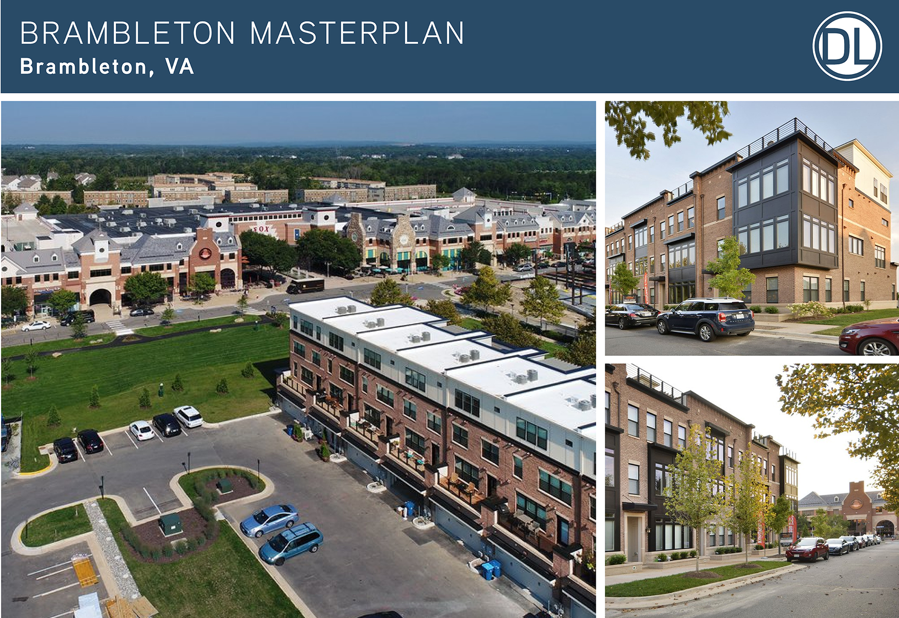 Brambleton masterplan, Brambleton, VA: What started as a more suburban community has shifted to have a more surban feel due to its town center and strategic placement of higher-density townhomes. The walkable community gives residents a lot of what they need without ever having to leave the community, including retail, entertainment, and outdoor gathering areas.
