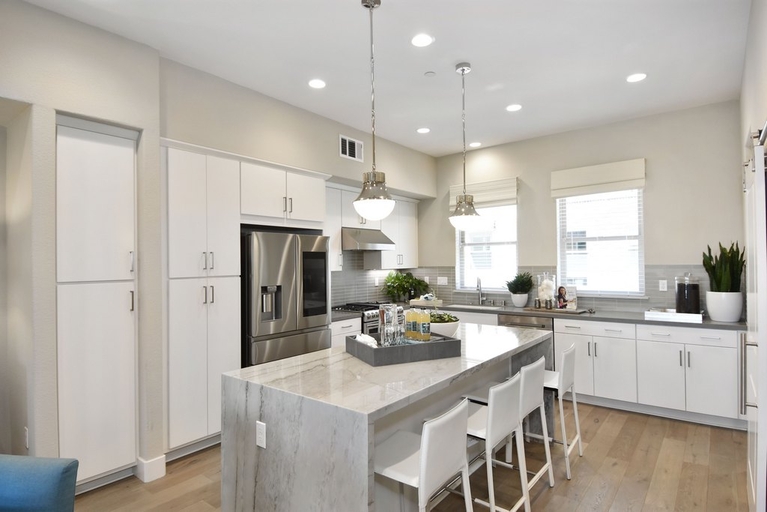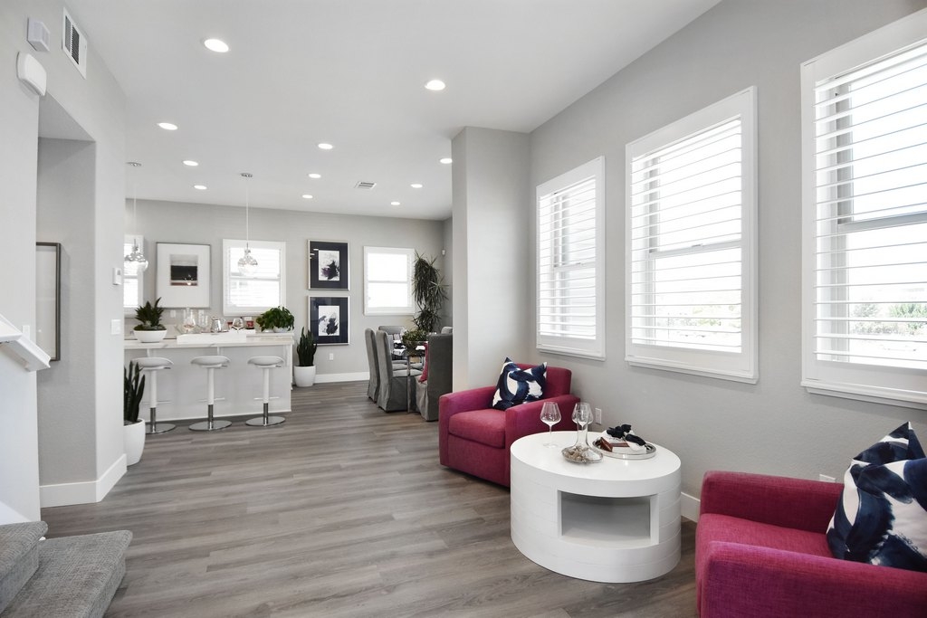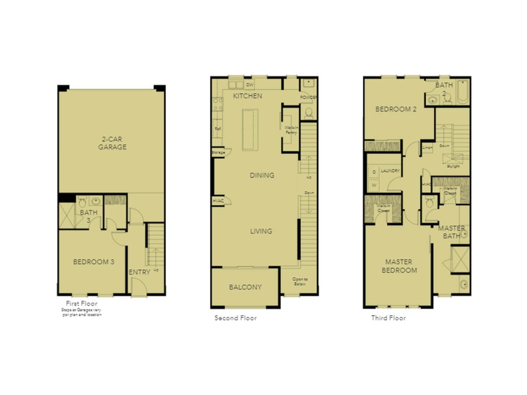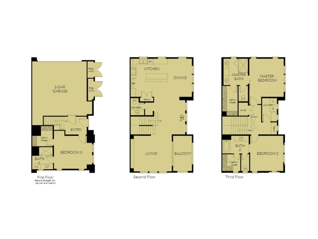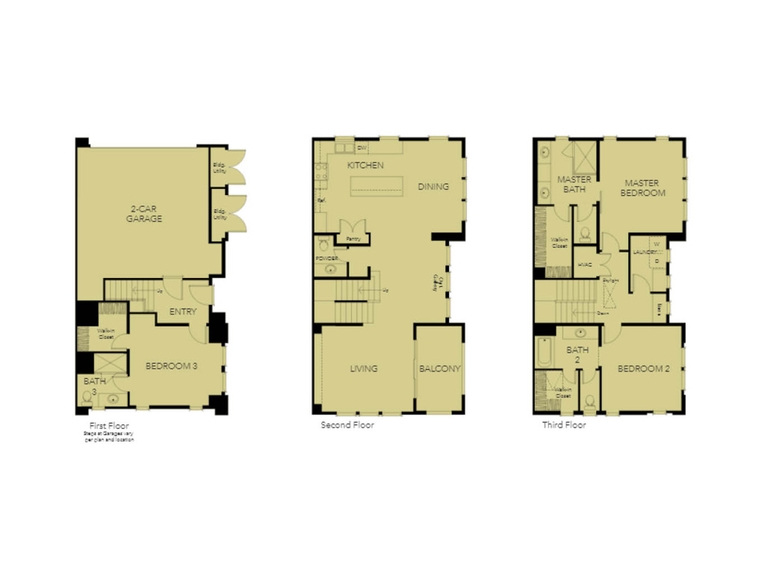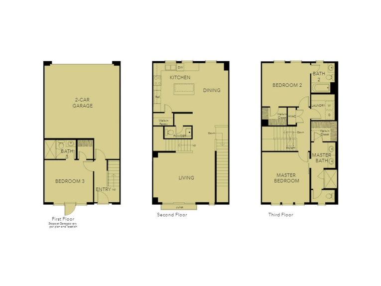 - These three-story townhomes all provide ground floor bedrooms and optional fourth floor lofts and roof decks.