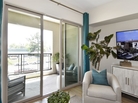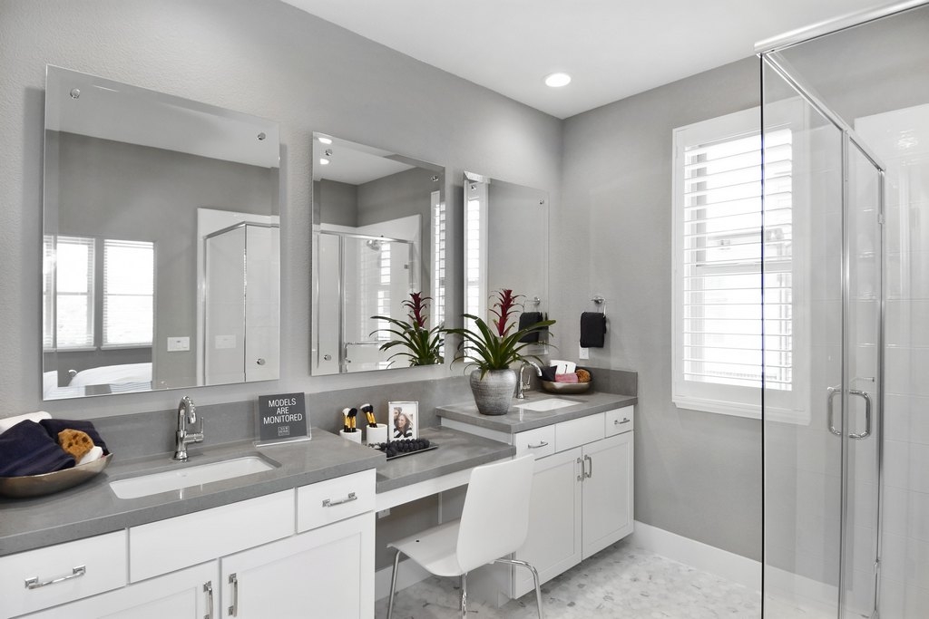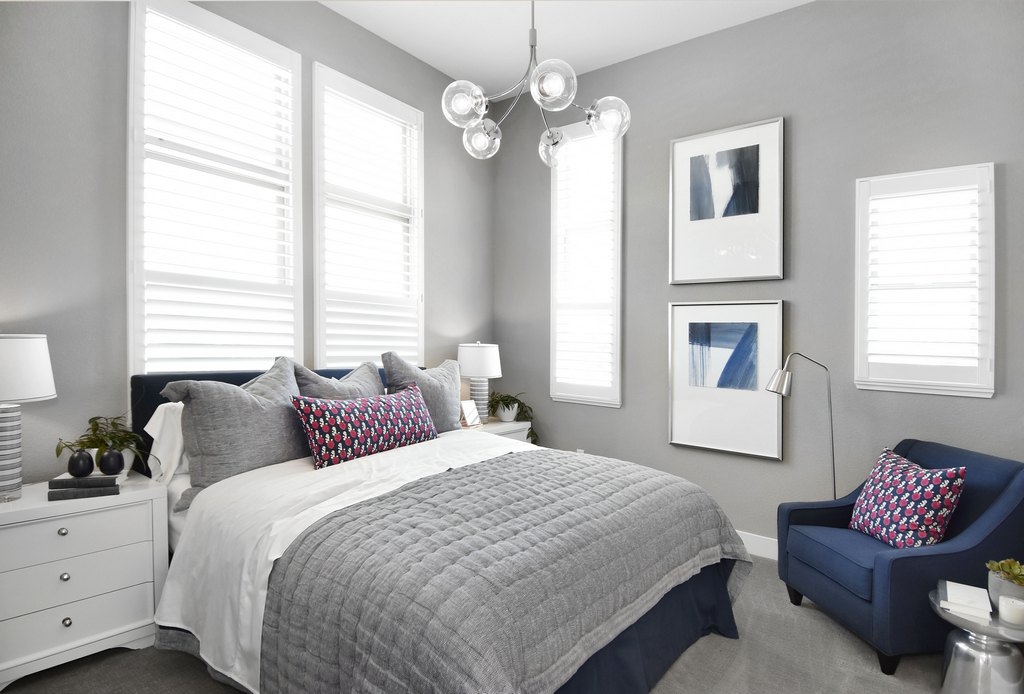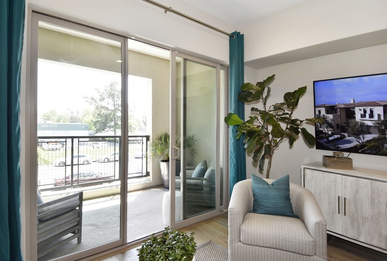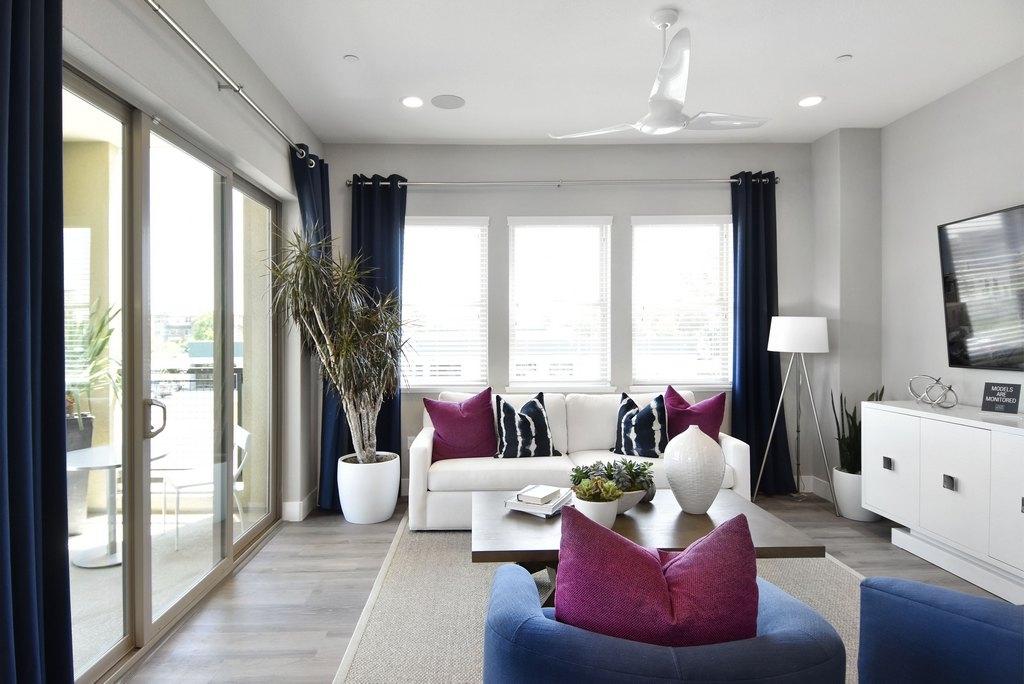 - Modern four-sided architecture plays with color and materials; awnings and balconies also add interest.